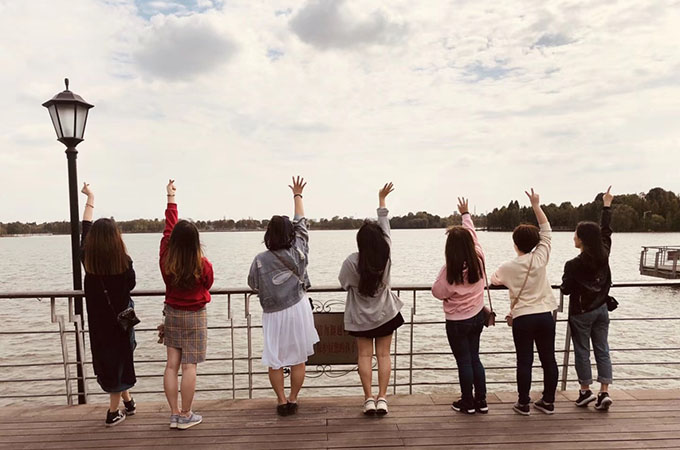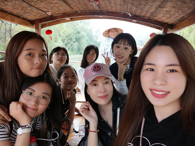 走走停停,逛逛走走,坐船自在跟着游。时间就这样不紧不慢悠闲的游走了。在吃完溱湖湖鲜宴午餐后,就踏上了回沪的旅程。在朋友圈,在伙伴们各自的大群、小群,这两天团队游上靓丽的青春声影和欢快的歌声再次回响……