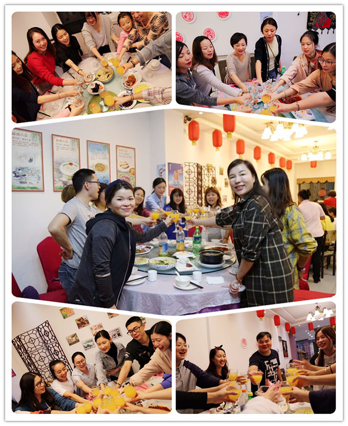 老师们高举酒杯,庆祝相聚,为欢乐的旅程和幸福的明天干杯。