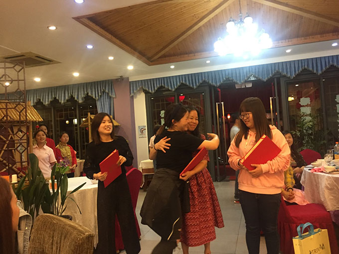 晚餐的最后,朱老师还将SBOBET利记官网三位优秀的儿童之家主班老师请了出来,请他们谈谈在SBOBET利记官网儿童之家的成长历程和心得,对她们的付出和努力表示肯定,并为她们颁发了“SBOBET利记官网2018优秀班主任”荣誉证书(每个获奖者还可获得纵贯线双人帐篷套装一套)。三位老师对成长过程中帮助她们的同事们充满了感激之情,这意外的获奖让她们感到非常的惊喜,园所的伙伴们也热烈鼓掌为她们获奖开心。