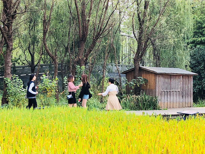 午餐地方特色美味【靖江点心宴】后,老师们来到了【牧城公园】参观。